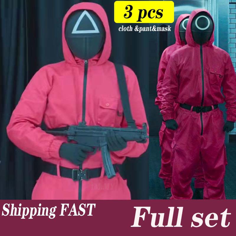 Hot Sale The Squid Game Goon Jumpsuit Mask Full Set Front Man Goon Costume Cosplay Suit With Mask Costume Red Halloween Shopee Malaysia